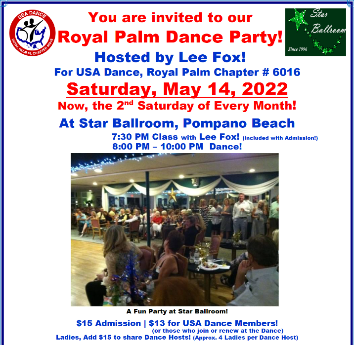Contact: Lee Fox foxtrotdc@aol.com or 561-702-3699